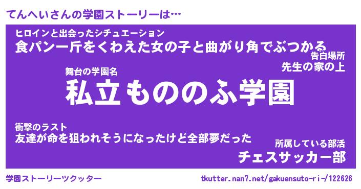 | 男性向けラノベタイトル風あだ名 | 『てんへいの憂鬱』 |