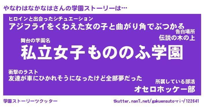 | 男性向けラノベタイトル風あだ名 | 『ヤナワハナカナハアートオンライン』 |