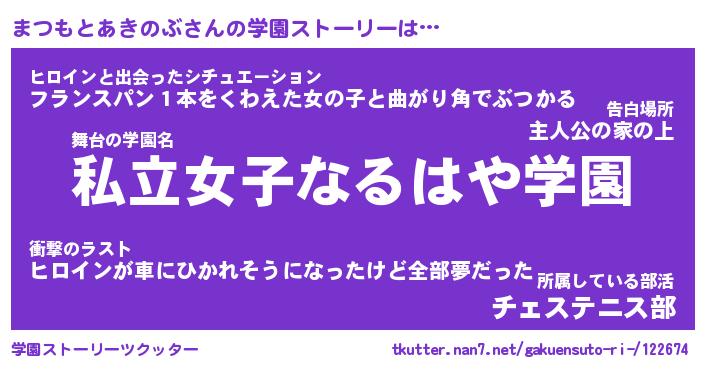 | 告白場所 先生の家の上 …「ふぃぎゅこ」 | 2月17日 06:24 |