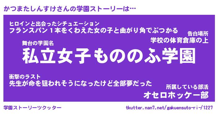 | 女子向けラノベタイトル風あだ名 | 『誰かこのかつまたしんすけを説明してください! ~契約から始まるウェディング~』 |