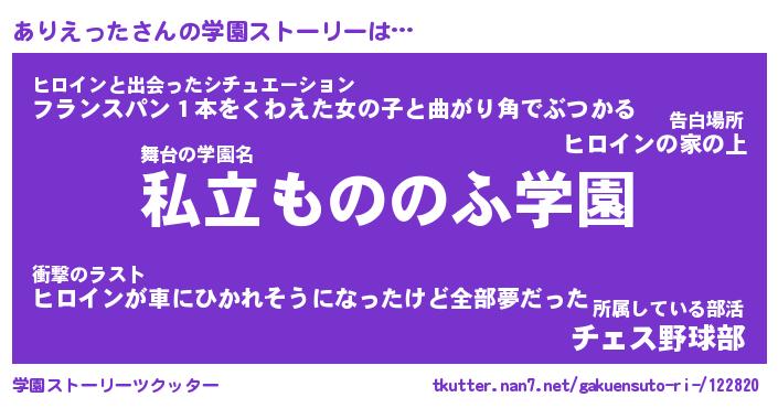 | 男性向けラノベタイトル風あだ名 | 『ありえったの憂鬱』 |