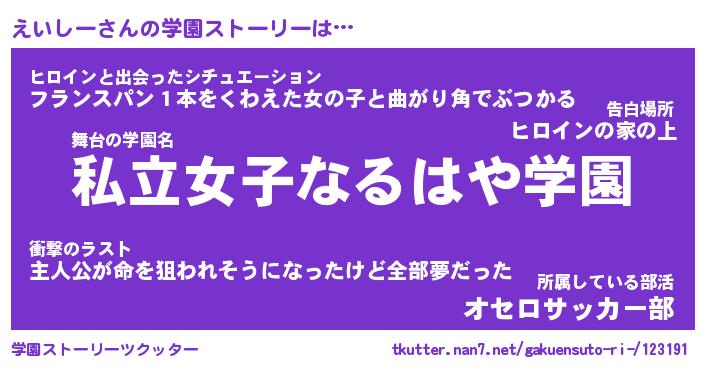 | 女子向けラノベタイトル風あだ名 | 『えいしー姫と円卓の騎士』 |