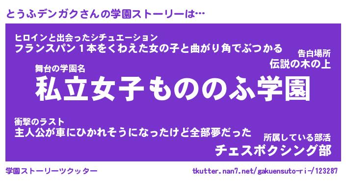 | 女子向けラノベタイトル風あだ名 | 『とうふデンガク姫と円卓の騎士』 |