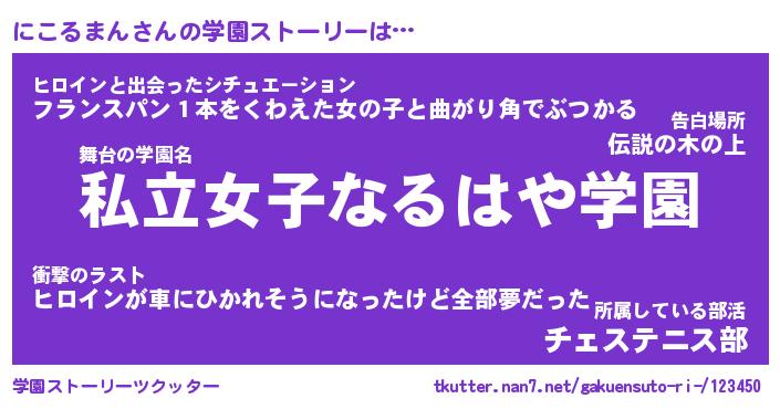 | ファンタジー風あだ名 | 『ニコフェル』『エターナルニコルマンー』 |