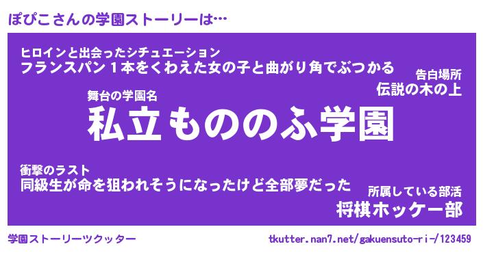 | 女子向けラノベタイトル風あだ名 | 『(仮)ぽぴこのやんごとなき事情』 |