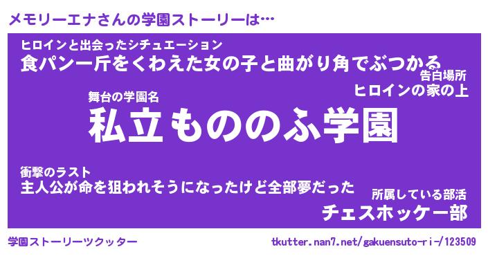 | 女子向けラノベタイトル風あだ名 | 『(仮)メモリーエナのやんごとなき事情』 |
