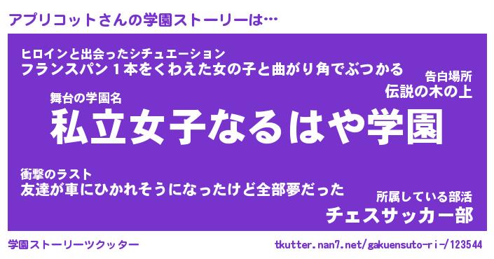 | ヒーロー風カッコイイあだ名 | 『スーパーアプリコット』『炎刃騎士アプ』 |