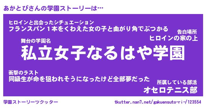 | 意味不明あだ名 | 『ペロリンあかとび』『永久保存あかとび』 |