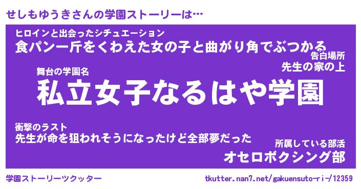 | ヘコむあだ名 | 『せしもー』『つくし』『せしっ子』 |