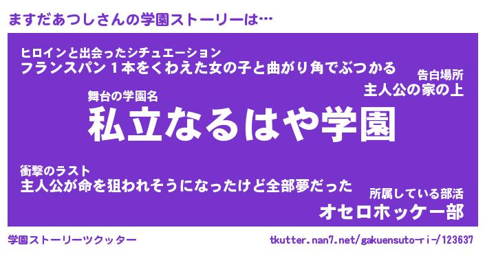 | 男性向けラノベタイトル風あだ名 | 『ますだあつしの憂鬱』 |