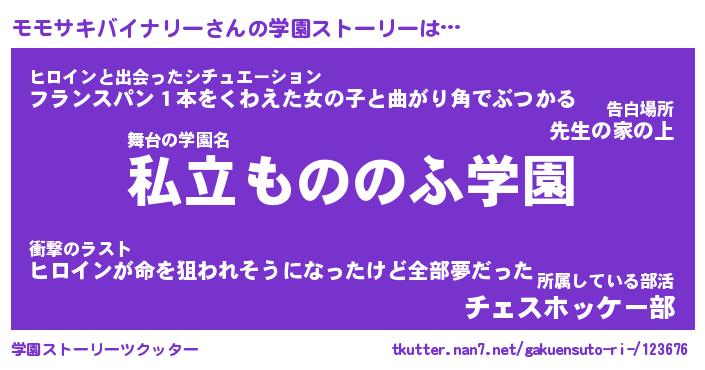 | 胡散臭い通販商品みたいなあだ名 | 『モテモテ間違いなしブレスレット…その名も「モモサキバイナリー」』 |
