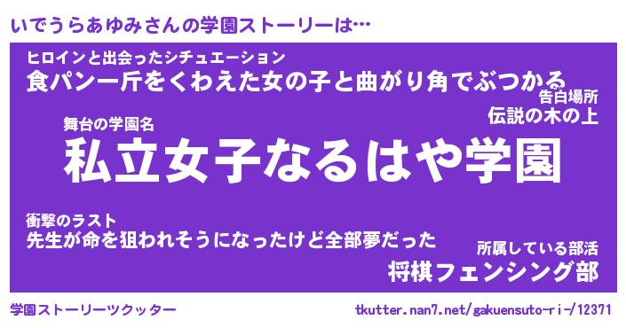 | 女子向けラノベタイトル風あだ名 | 『誰かこのいでうらあゆみを説明してください! ~契約から始まるウェディング~』 |