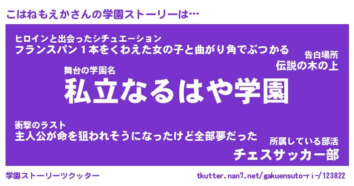 | 伝説のあだ名 | 『伝説のスナイパーこはねもえか』 |
