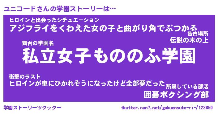 | 女子向けラノベタイトル風あだ名 | 『誰かこのユニコードを説明してください! ~契約から始まるウェディング~』 |