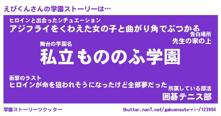 | 男性向けラノベタイトル風あだ名 | 『えびくんの憂鬱』 |