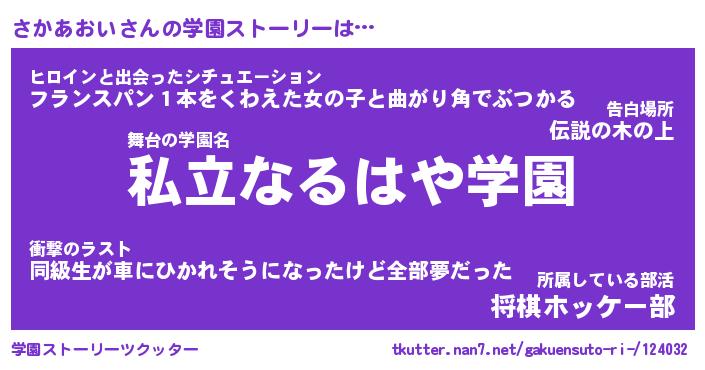| 男性向けラノベタイトル風あだ名 | 『さかあおいの憂鬱』 |