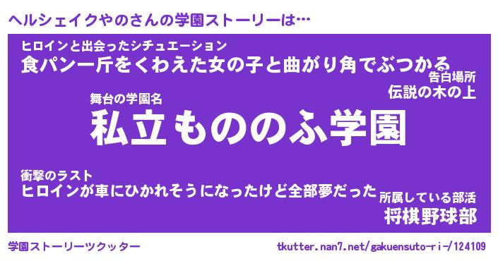| 女子向けラノベタイトル風あだ名 | 『(仮)ヘルシェイクやののやんごとなき事情』 |