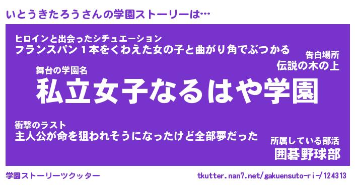 | 男性向けラノベタイトル風あだ名 | 『イトウキタロウアートオンライン』 |
