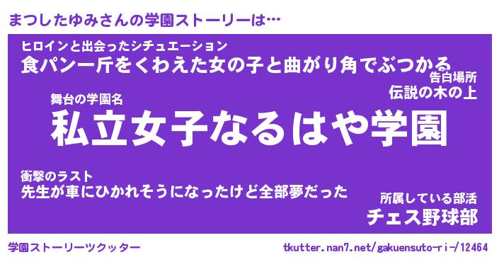 | ヘコむあだ名 | 『まつにゅー』『つくし』『まつっ子』 |