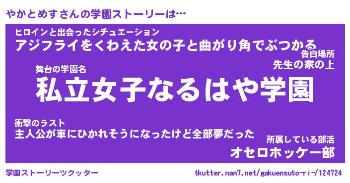 | 肩書あだ名 | 『やかとめす御曹司』『やかとめす教頭』 |