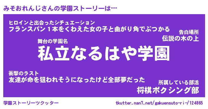 | 胡散臭い通販商品みたいなあだ名 | 『必ず成功する霊験あらたかなお札…その名も「みそおれんじ」』 |