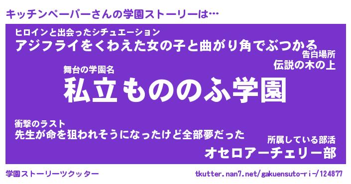 | 男性向けラノベタイトル風あだ名 | 『キッチンペーパーの憂鬱』 |