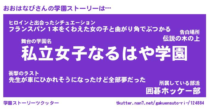 | 男性向けラノベタイトル風あだ名 | 『オオハナビアートオンライン』 |