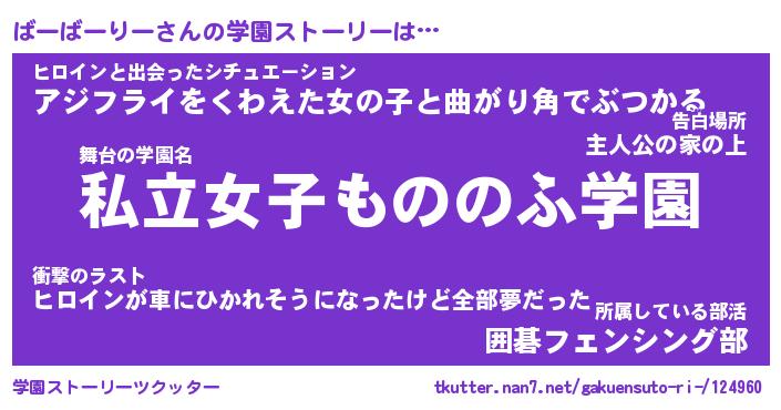 | 女子向けラノベタイトル風あだ名 | 『ばーばーりー姫と円卓の騎士』 |