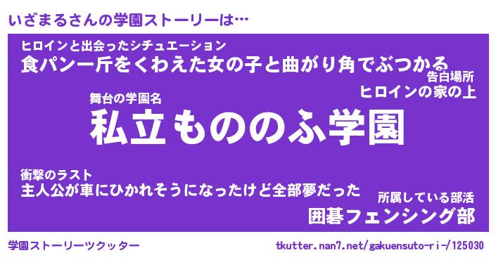 | 男性向けラノベタイトル風あだ名 | 『いざまるの憂鬱』 |