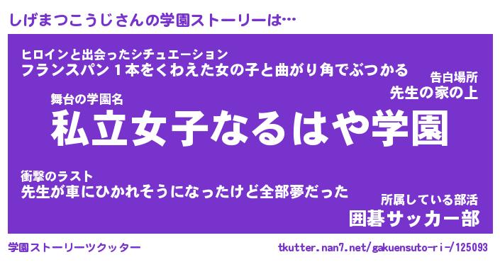 | 肩書あだ名 | 『しげまつこうじ御曹司』 |