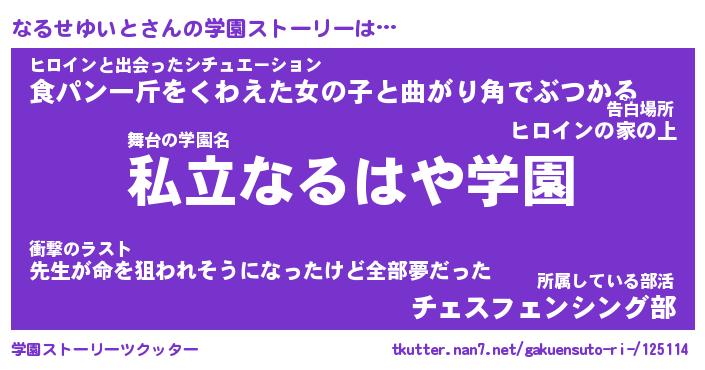 | 男性向けラノベタイトル風あだ名 | 『なるせゆいとの憂鬱』 |