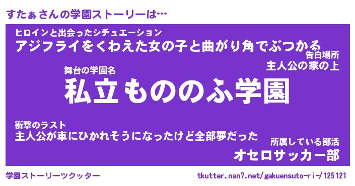 | 告白場所 先生の家の上 …「ふぃぎゅこ」 | 2月17日 06:24 |