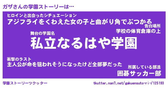 | ファンタジー風あだ名 | 『ガザフェル』『エターナルガザー』 |