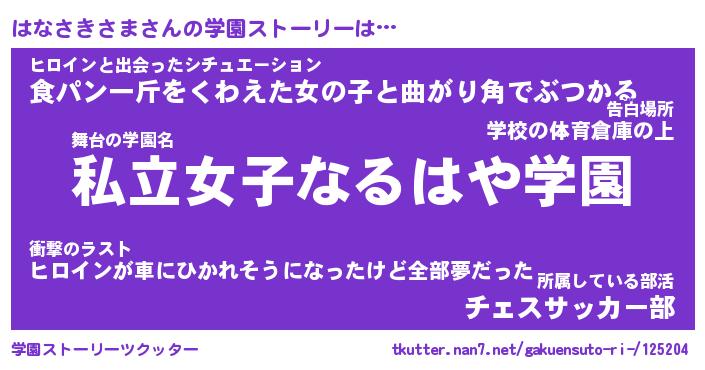 | 男性向けラノベタイトル風あだ名 | 『ハナサキサマアートオンライン』 |