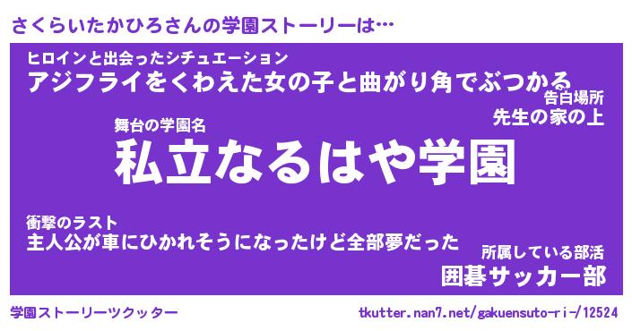 | 肩書あだ名 | 『さくらいたかひろ御曹司』 |