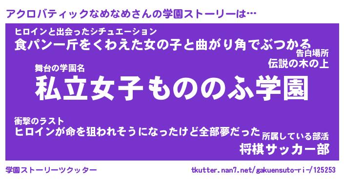 | 女子向けラノベタイトル風あだ名 | 『アクロバティックなめなめ姫と円卓の騎士』 |