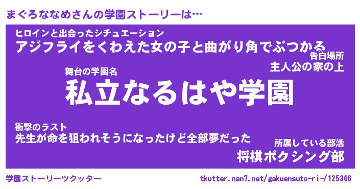| 女子向けラノベタイトル風あだ名 | 『(仮)まぐろななめのやんごとなき事情』 |