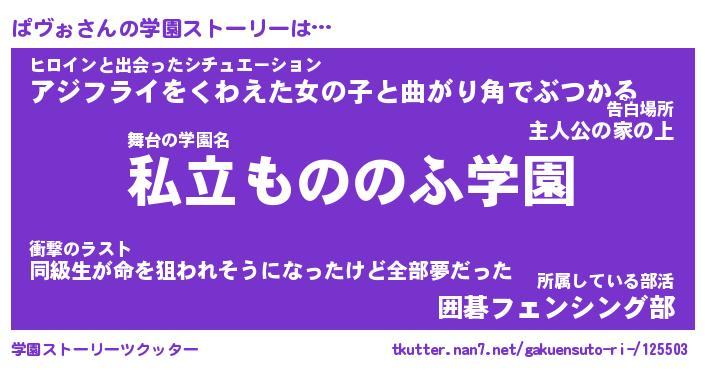 | 男性向けラノベタイトル風あだ名 | 『ぱヴぉの憂鬱』 |