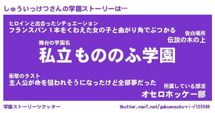 | 男性向けラノベタイトル風あだ名 | 『しゅういっけつの憂鬱』 |