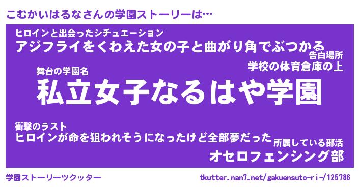 | 女子向けラノベタイトル風あだ名 | 『こむかいはるな姫と円卓の騎士』 |