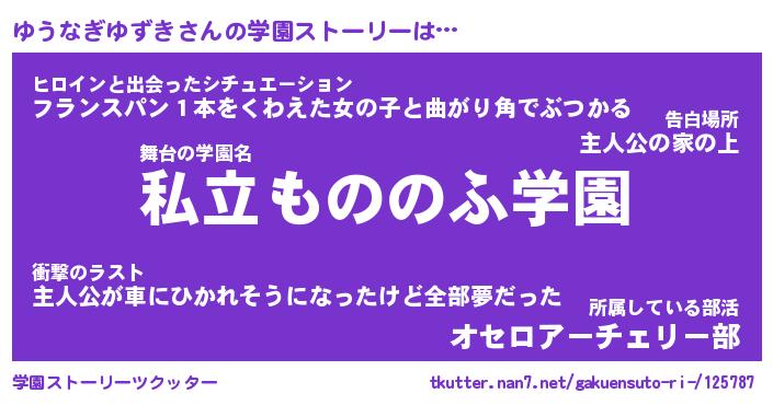 | 男性向けラノベタイトル風あだ名 | 『ゆうなぎゆずきの憂鬱』 |