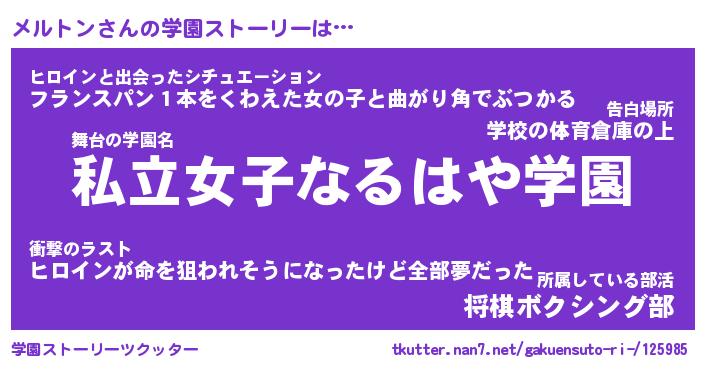 | ヒーロー風カッコイイあだ名 | 『スーパーメルトン』『銀牙騎士メル』 |