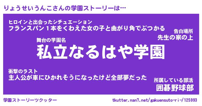 | 番長 | りょうせいうんこ、またの名を・・・!『ウィンドウズりょうせいうんこ番長』 |