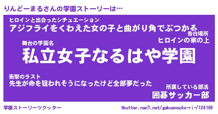 | 女子向けラノベタイトル風あだ名 | 『りんどーまる姫と円卓の騎士』 |