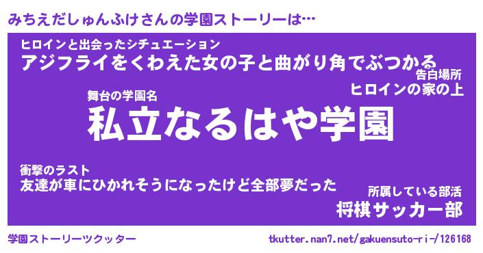 | 男性向けラノベタイトル風あだ名 | 『みちえだしゅんふけの憂鬱』 |