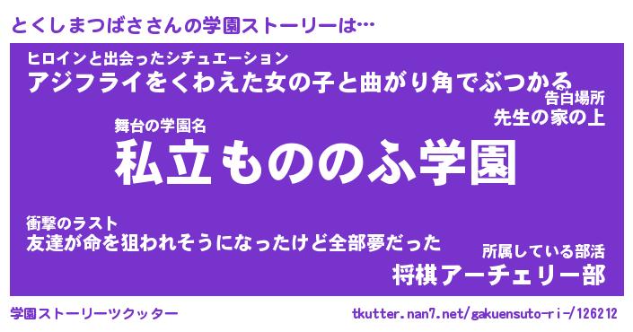 | 女子向けラノベタイトル風あだ名 | 『(仮)とくしまつばさのやんごとなき事情』 |