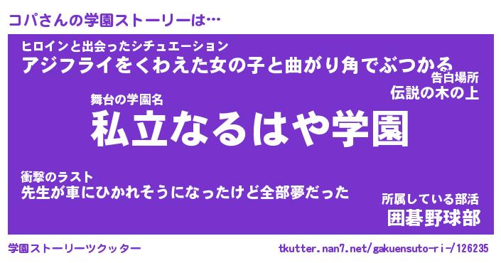 | ファンタジー風あだ名 | 『コパフェル』『エターナルコパー』 |