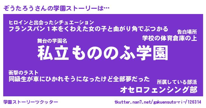 | 男性向けラノベタイトル風あだ名 | 『ぞうたろうの憂鬱』 |