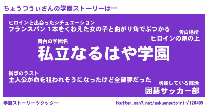 | 告白場所 先生の家の上 …「ふぃぎゅこ」 | 2月17日 06:24 |