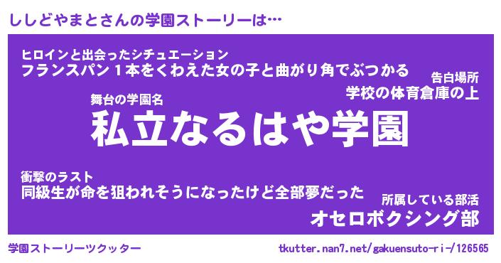 | 伝説のあだ名 | 『伝説のスナイパーししどやまと』 |